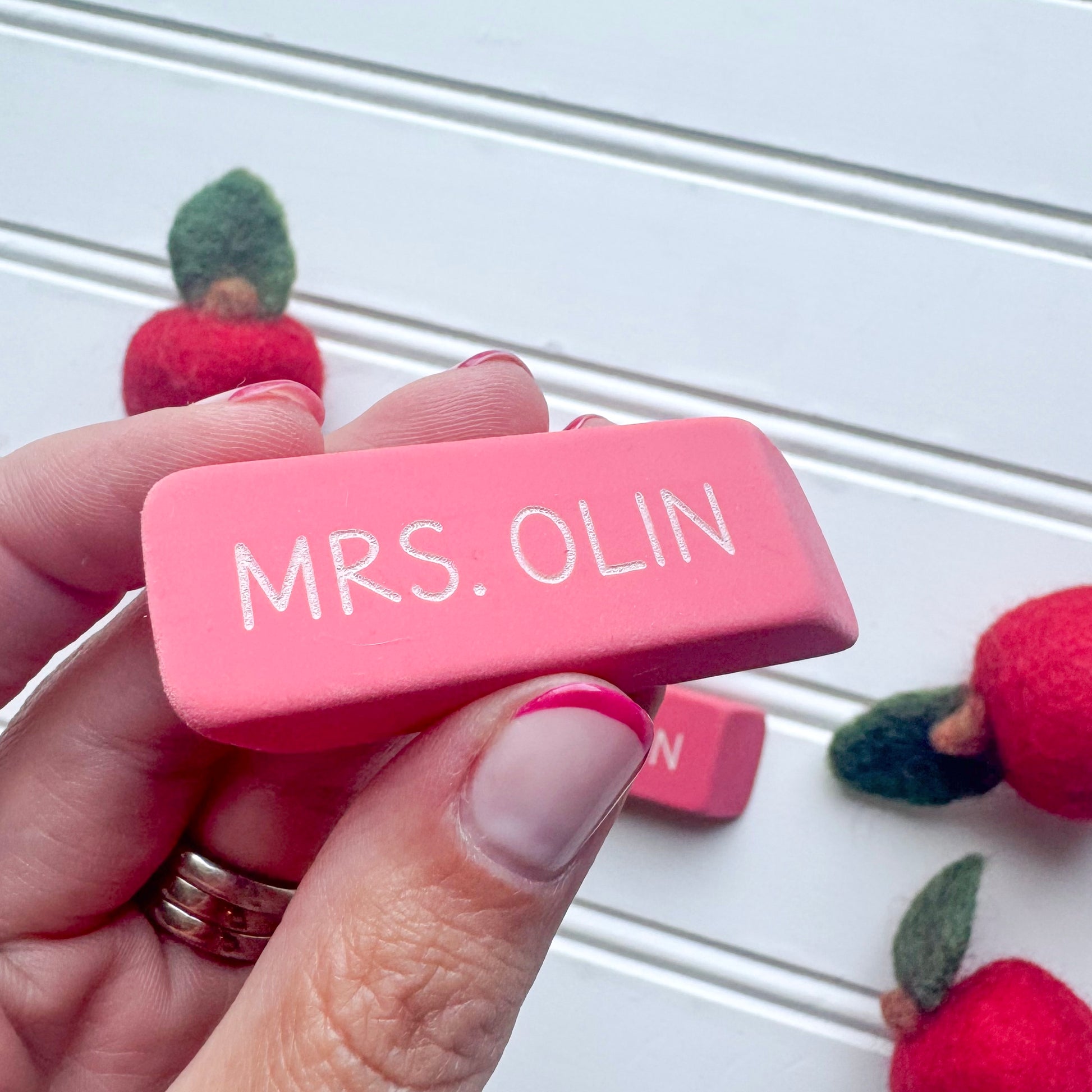 Custom engraved eraser- standard size Papermate Pink Pearl. Listing is for one.